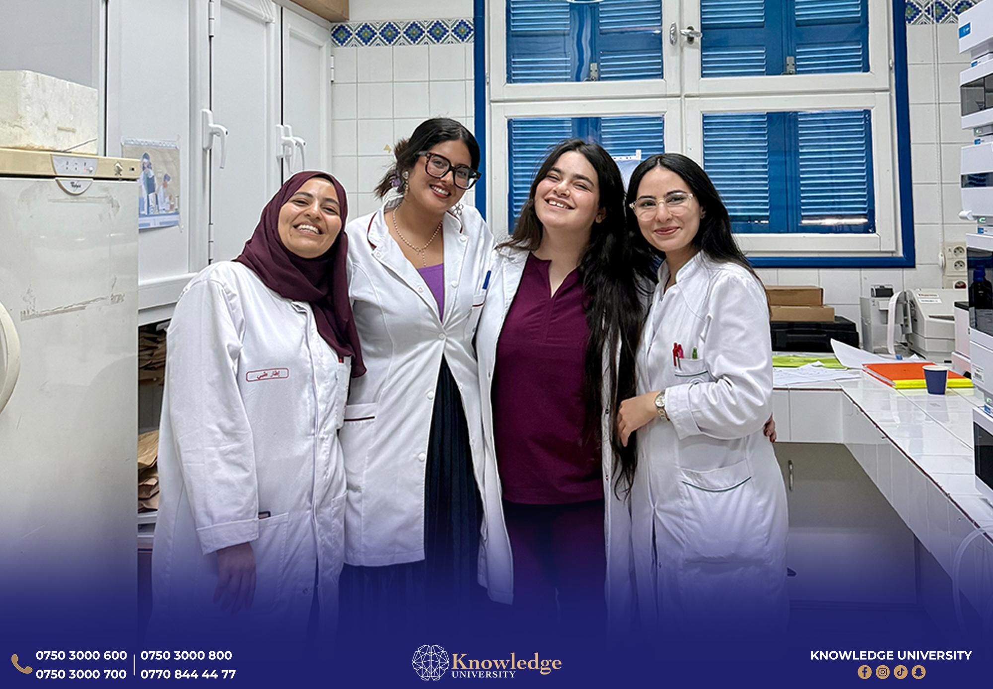 Zahra Serkewt Faizullah, a student from the College of Pharmacy at Knowledge University, successfully completed a one-month training program in the city of Monastir, Tunisia. The program, organized by the Kurdistan Pharmacy Students Association (KPSA), provided practical training in medical and pharmaceutical laboratories at Monastir University Hospital (Fattouma Bourguiba Hospital), with participation alongside students from various Arab countries.