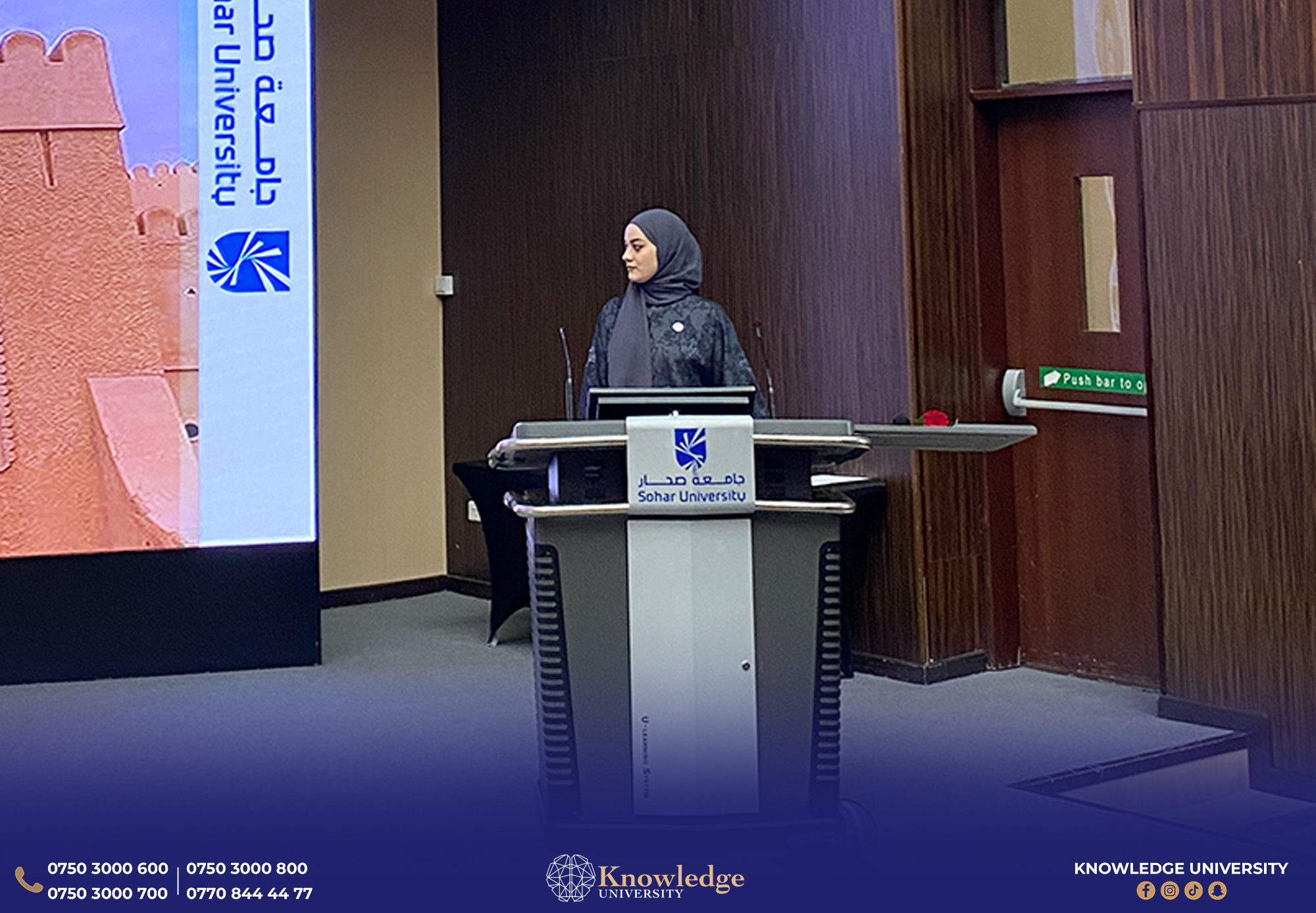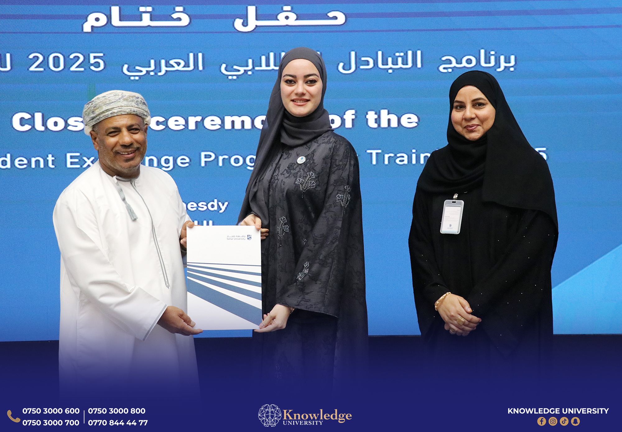 As part of an MoU between Knowledge University and a group of Arab universities, within the 3rd Arab Training Mobility Program, four students from Knowledge University successfully completed a 25-day international training hosted by Sohar University – Sultanate of Oman.