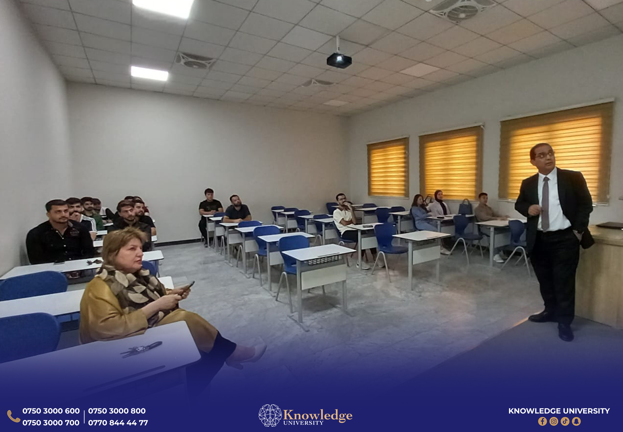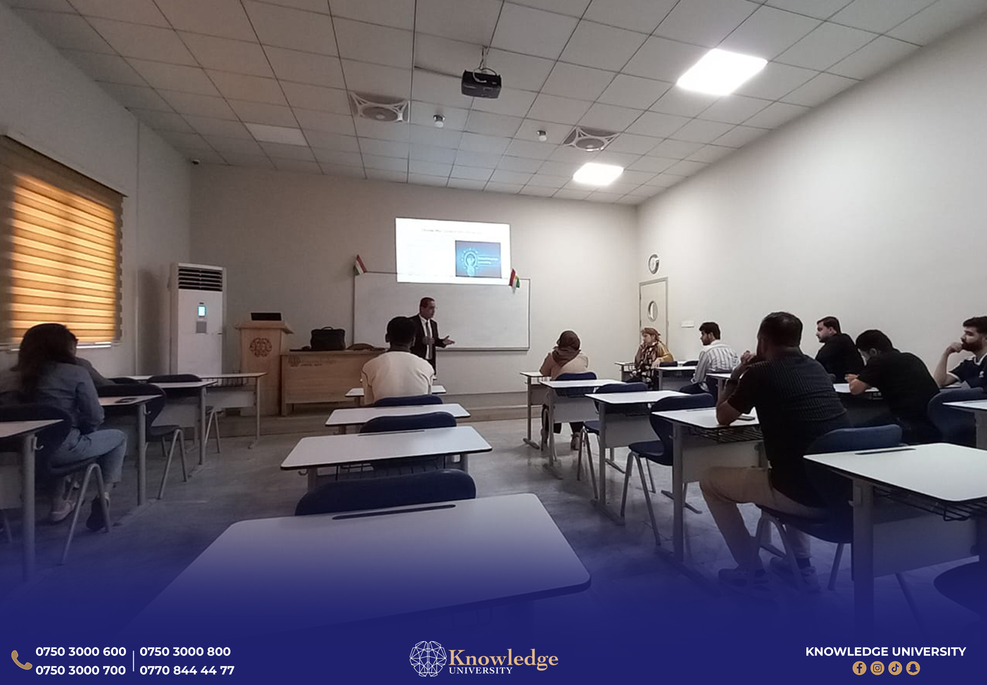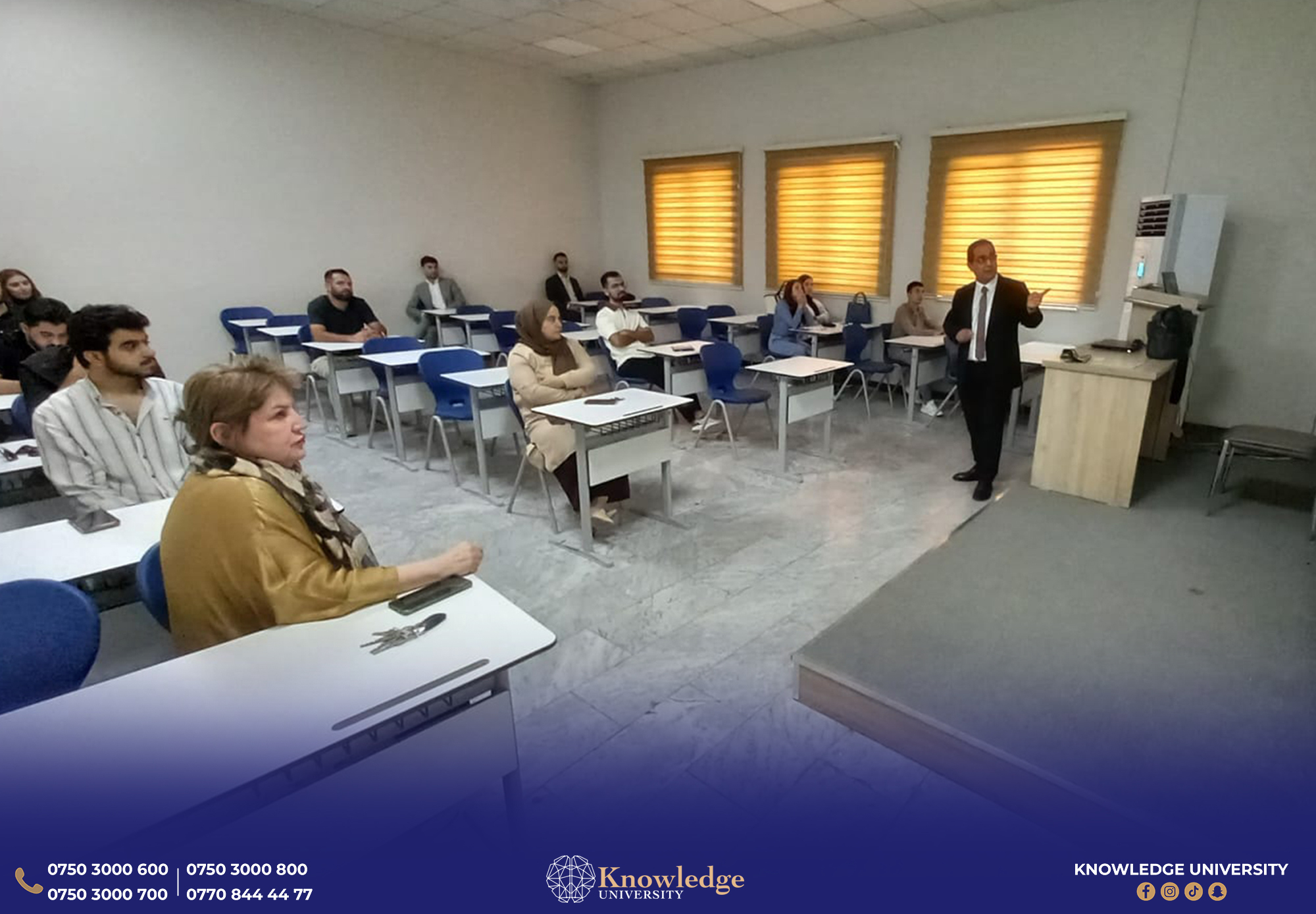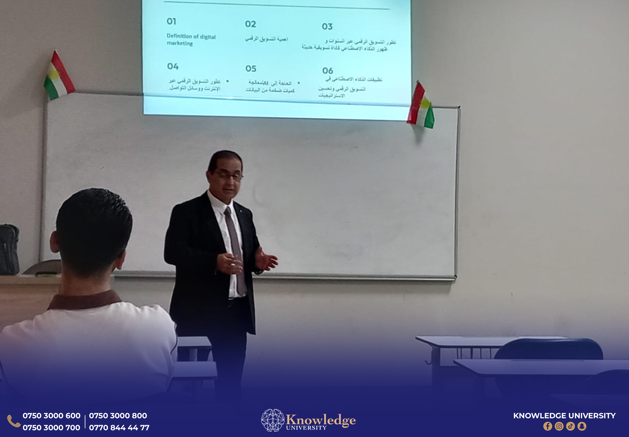 The College of Administrative and Financial Sciences at Knowledge University organized a seminar titled “The Role of Artificial Intelligence in Digital Marketing”, presented by Mr. Azad Salih Nader, with the attendance of Dr. Nazima Ahmed (Dean of the College), academic staff from both the Administration and Accounting Departments, and a number of students.