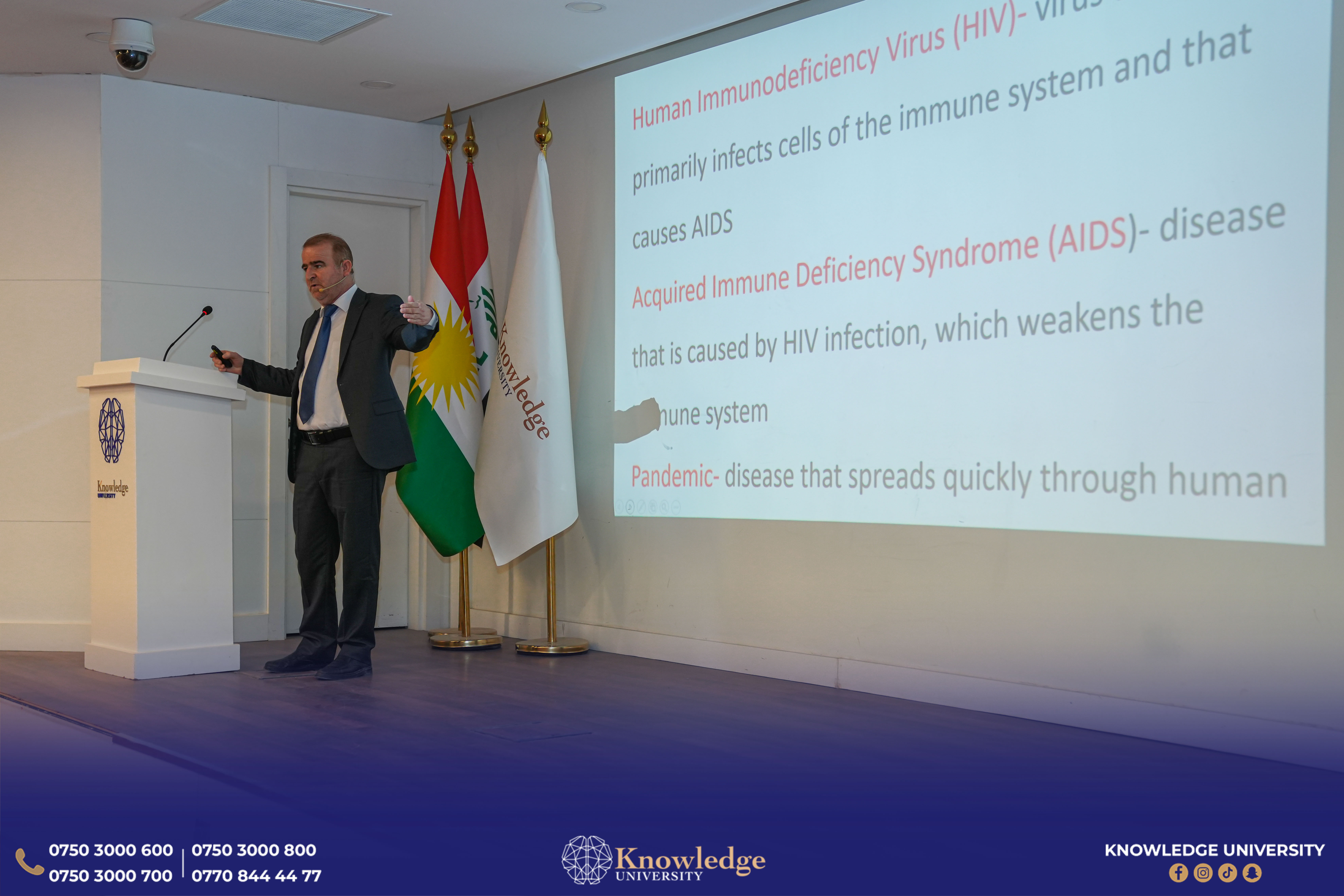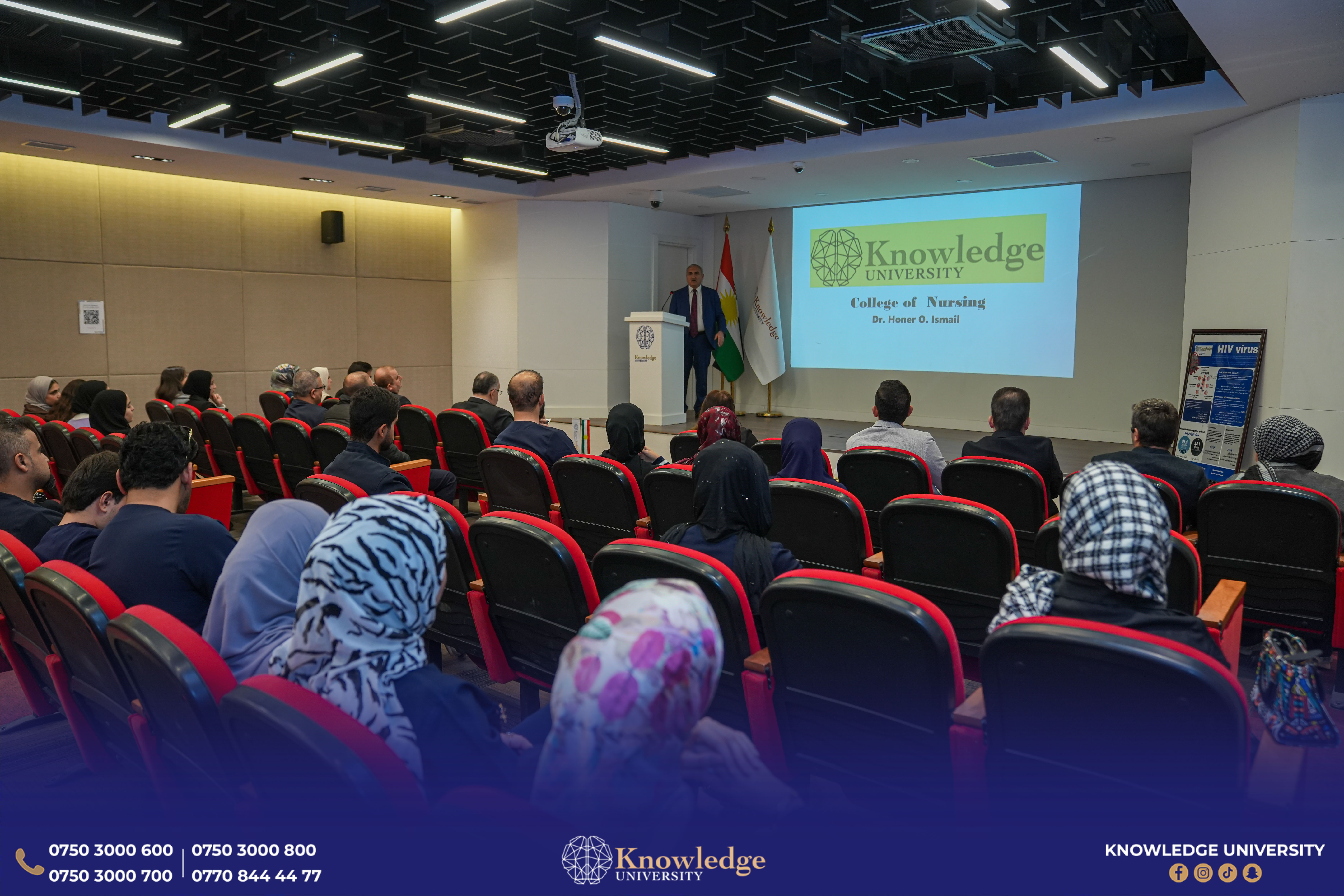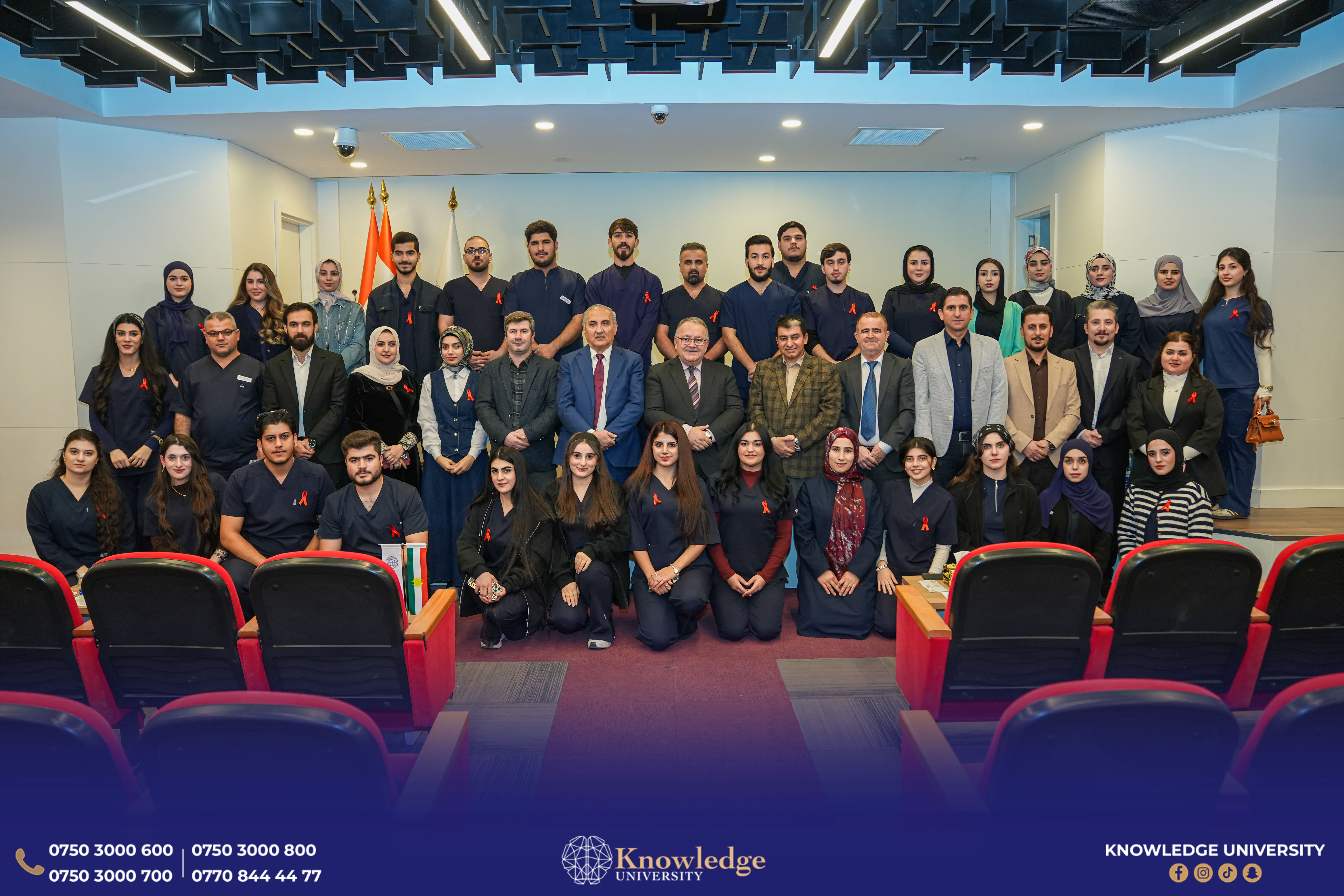 As part of Knowledge University’s continued observance of international awareness days, and with the aim of increasing public awareness about HIV/AIDS, its causes, and prevention methods, the College of Nursing organized a specialized workshop at the university. The workshop was held in the presence of Prof. Dr. Ahmed Dzayee, President of Knowledge University, and was titled: “World AIDS Day: Awareness and Prevention.”
