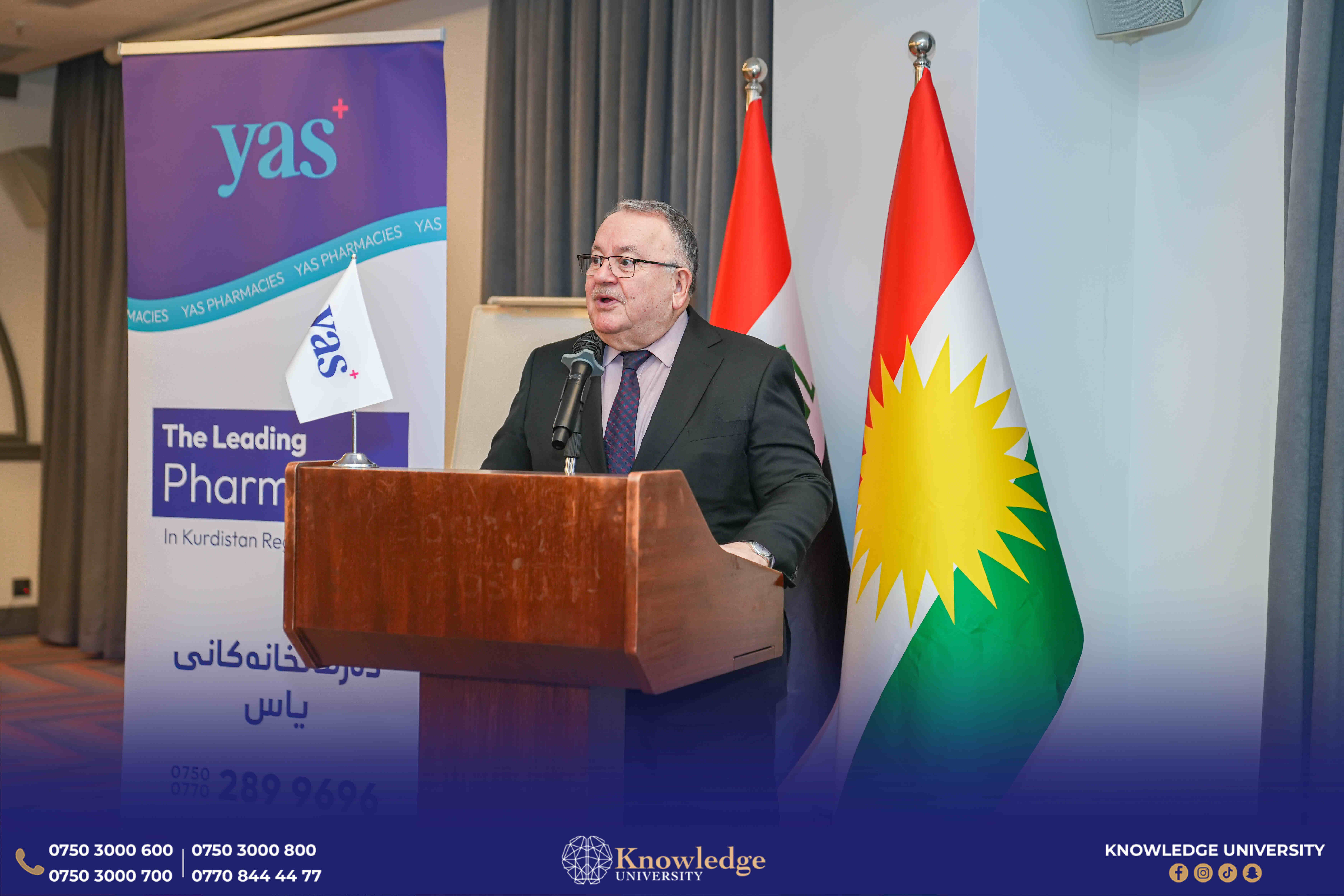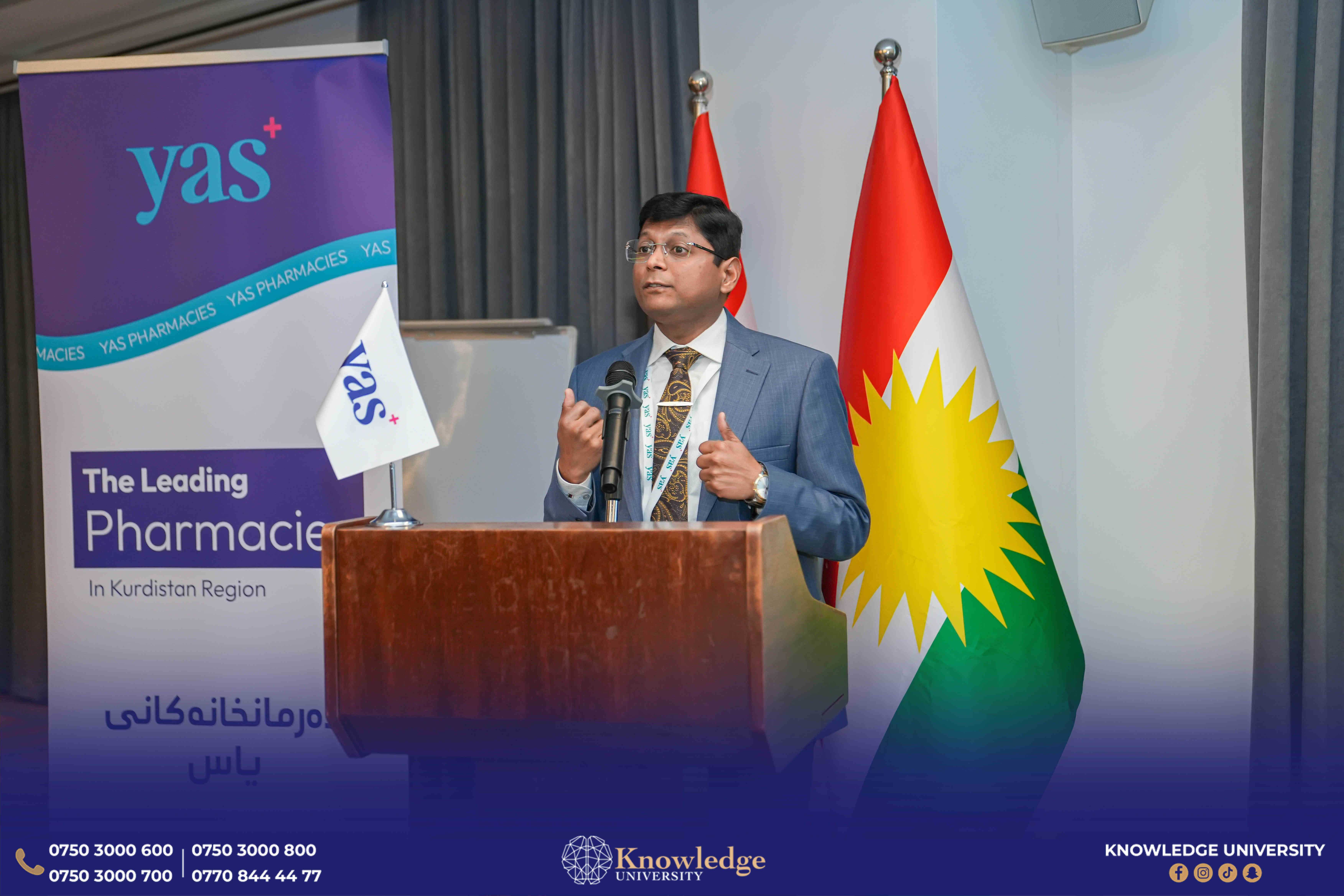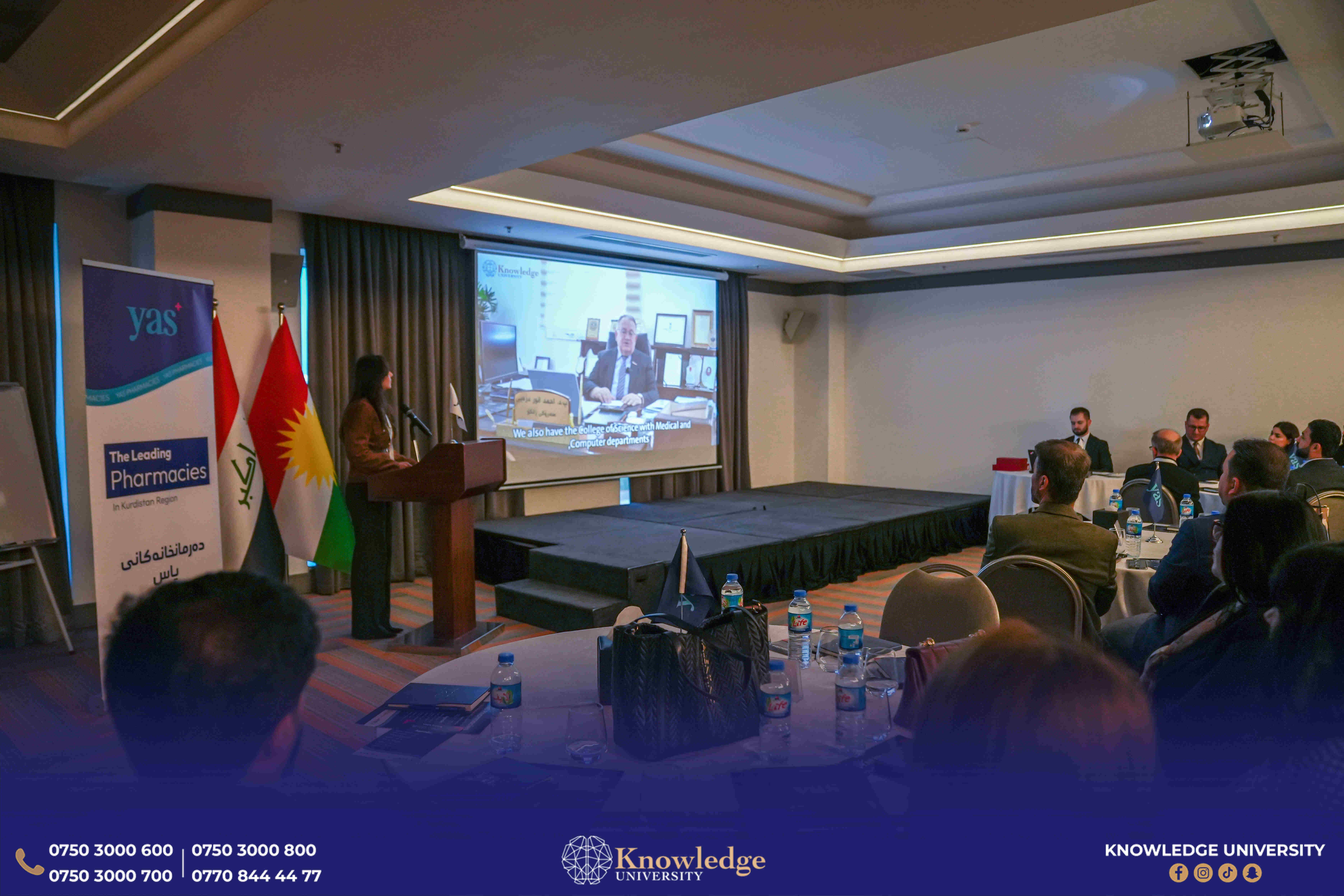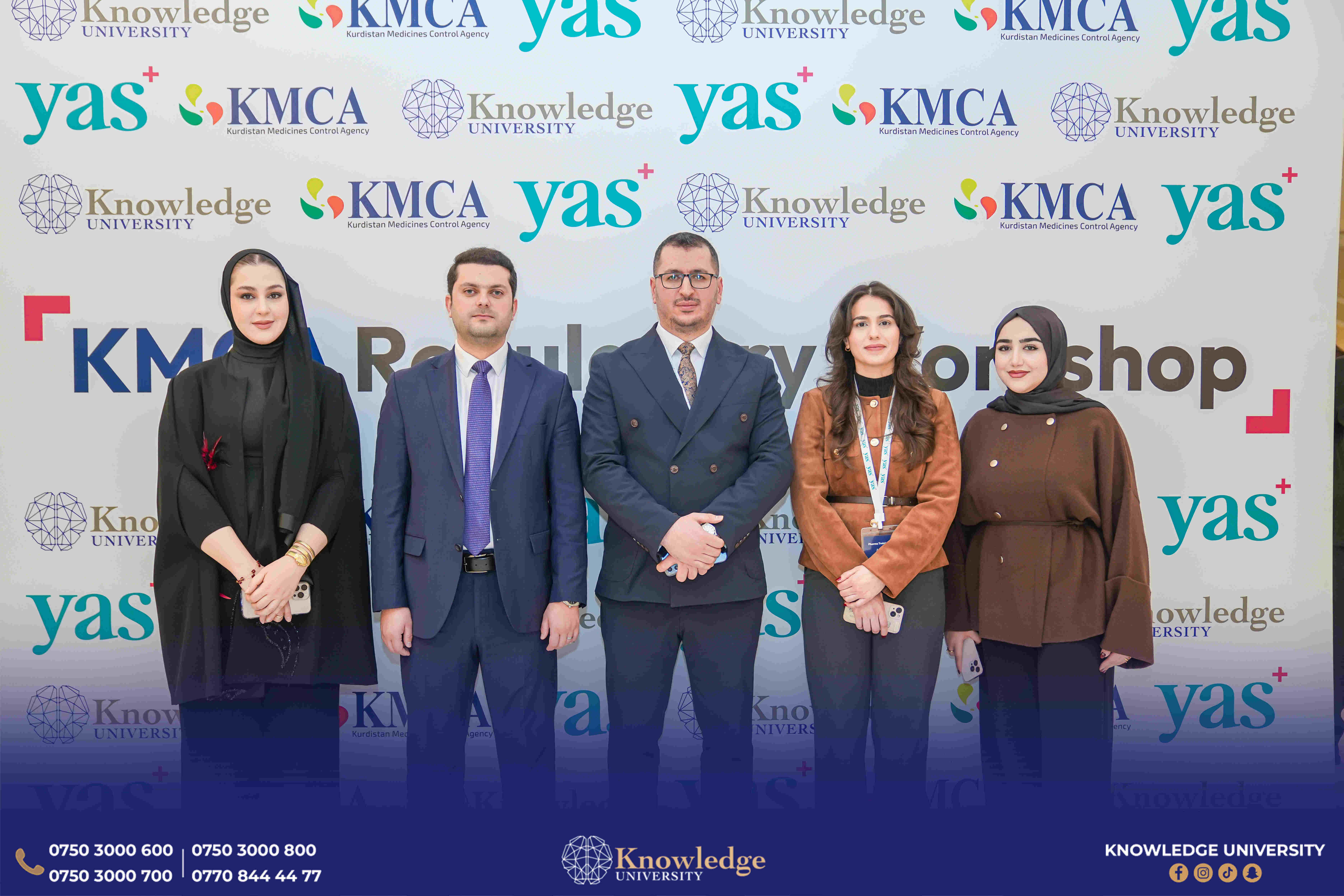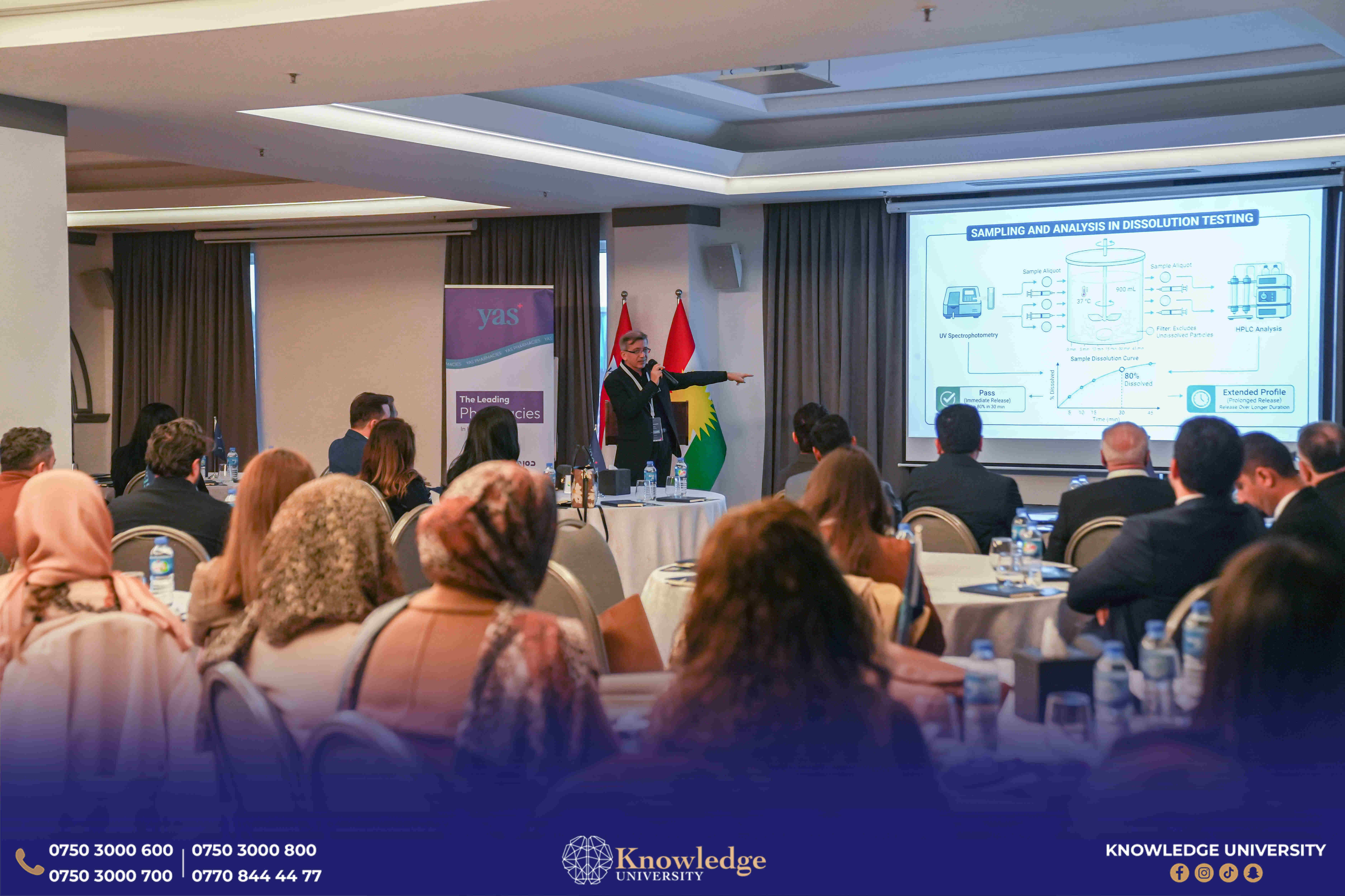 The College of Pharmacy at Knowledge University, with sponsorship from Yas Pharmacies, organized a specialized scientific workshop on Drug Quality Control, for the members of Kurdistan Medicines Control Agency (KMCA). The workshop was held in the presence of the President of Knowledge University, the Dean and Heads of Departments, academic staff of the college, as well as internal and external guests.