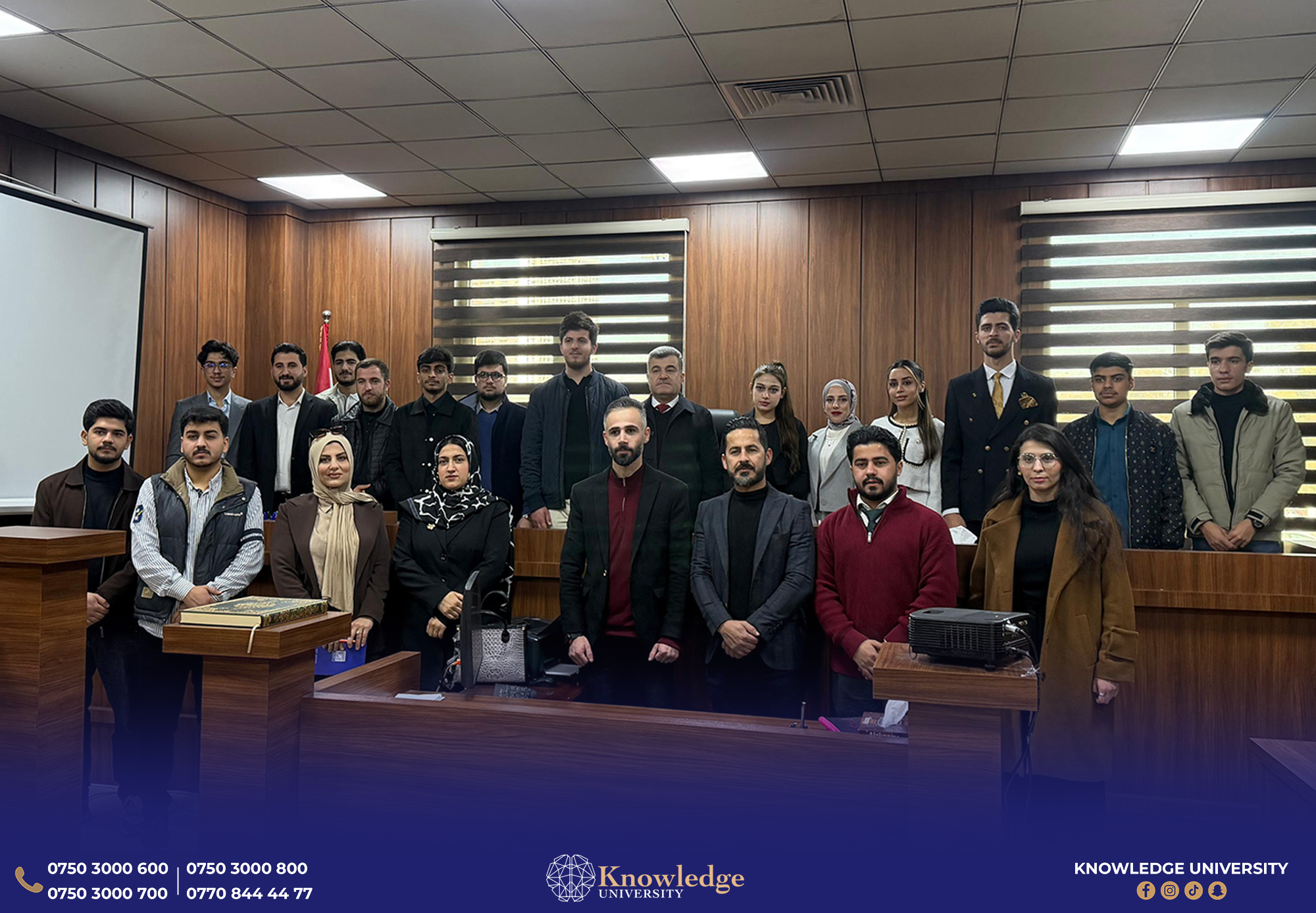 On Wednesday, January 7, 2026, first-year students from the Department of Law at Knowledge University conducted a scientific visit to the Erbil Appeal Court, under the supervision of Asst. Prof. Helmat Mohammed Asaad, a lecturer in the department.