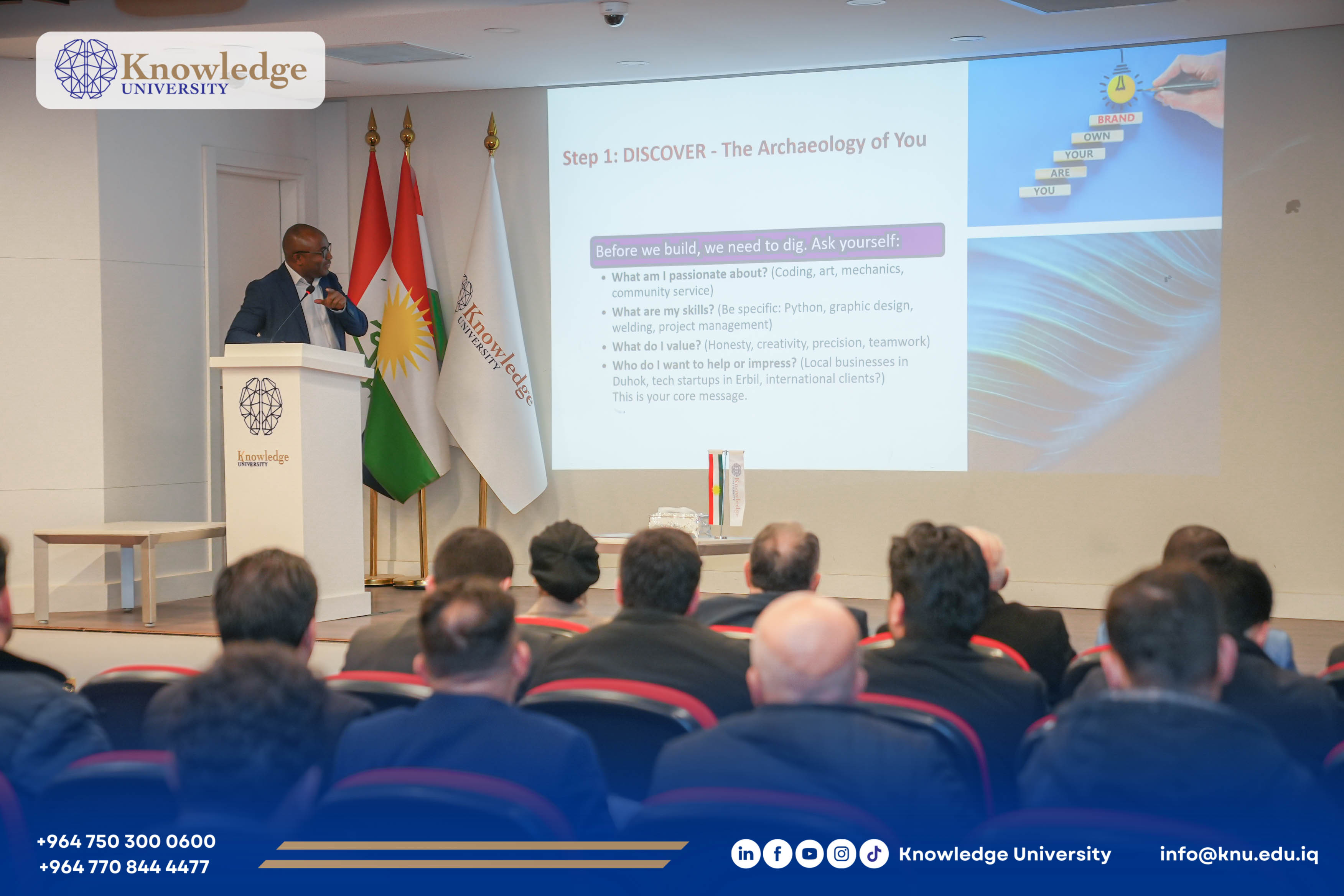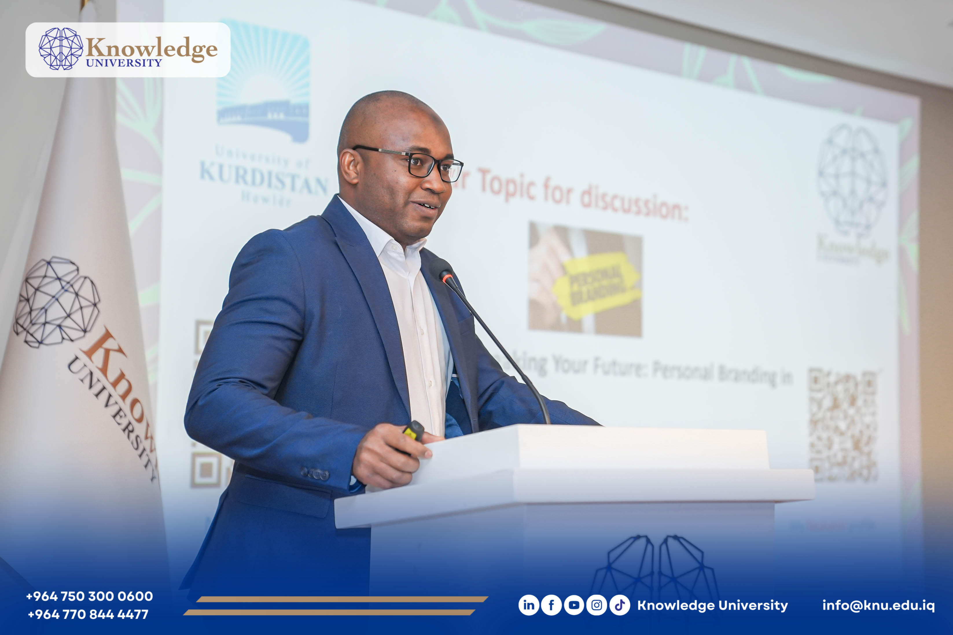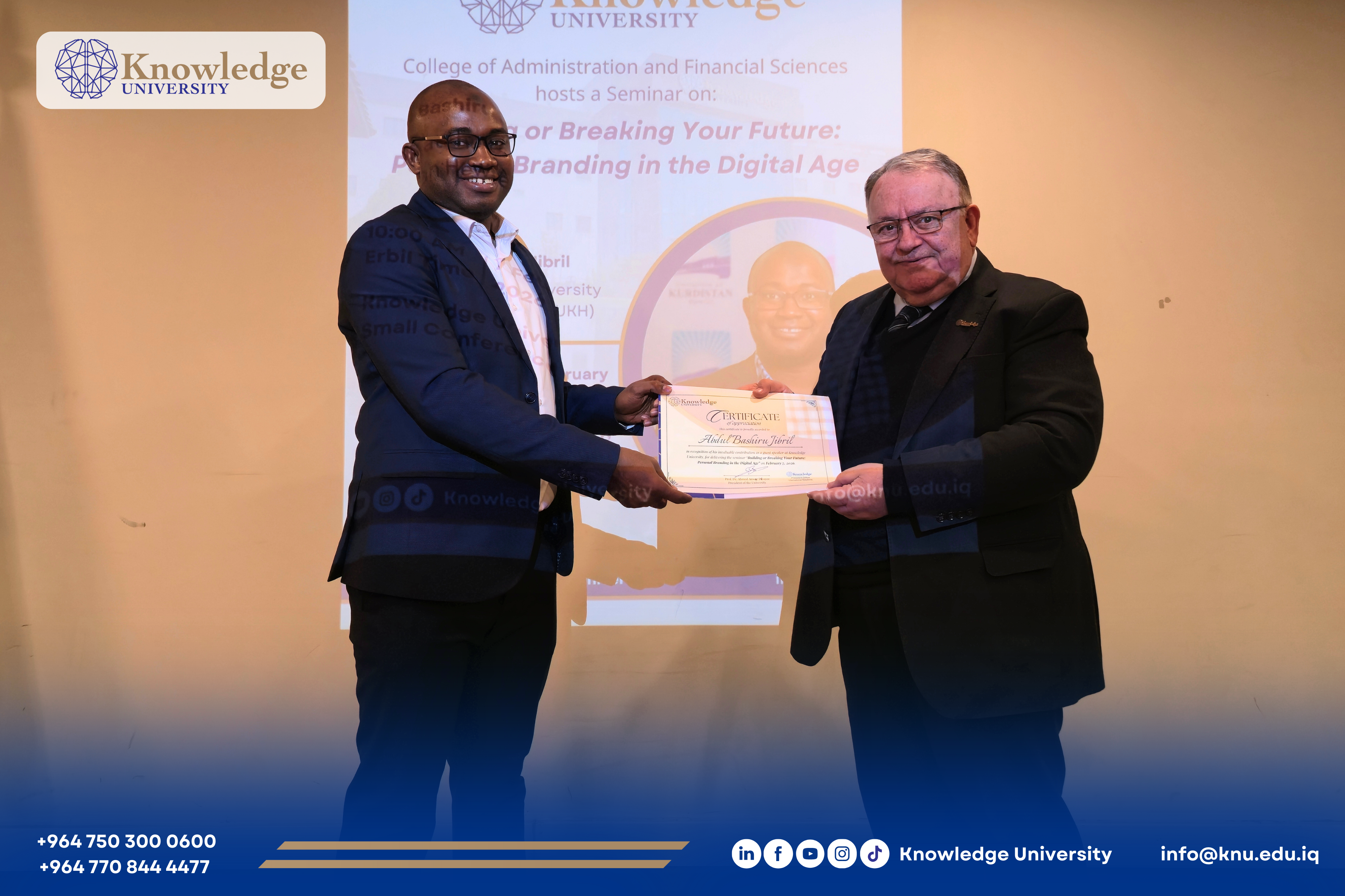 Knowledge University organized an academic seminar entitled “Building or Breaking Your Future: Personal Branding in the Digital Age”, hosted by the College of Administration and Financial Sciences.
