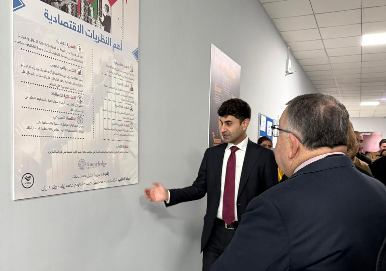ڕۆژی چوارشەممە ڕێکەوتی ١١ی شوبات ٢٠٢٦، کۆلیژی زانستە کارگێڕی و داراییەکان هەستا بە سازدانی چاڵاکییەکی ئەکادیمی تایبەت کە پێکهاتبوو لە کردنەوەی پێشانگەی پۆستەری قوتابیان. ئەم چاڵاکییە بە مەبەستی پشتیوانیکردن لە توانا و لێهاتووییە زانستی و توێژینەوەییەکانی قوتابیان و فراوانکردنی ئاستی هۆشیارییان لە بوارە جۆراوجۆرەکانی کارگێڕی و دارایی ئەنجامدرا.