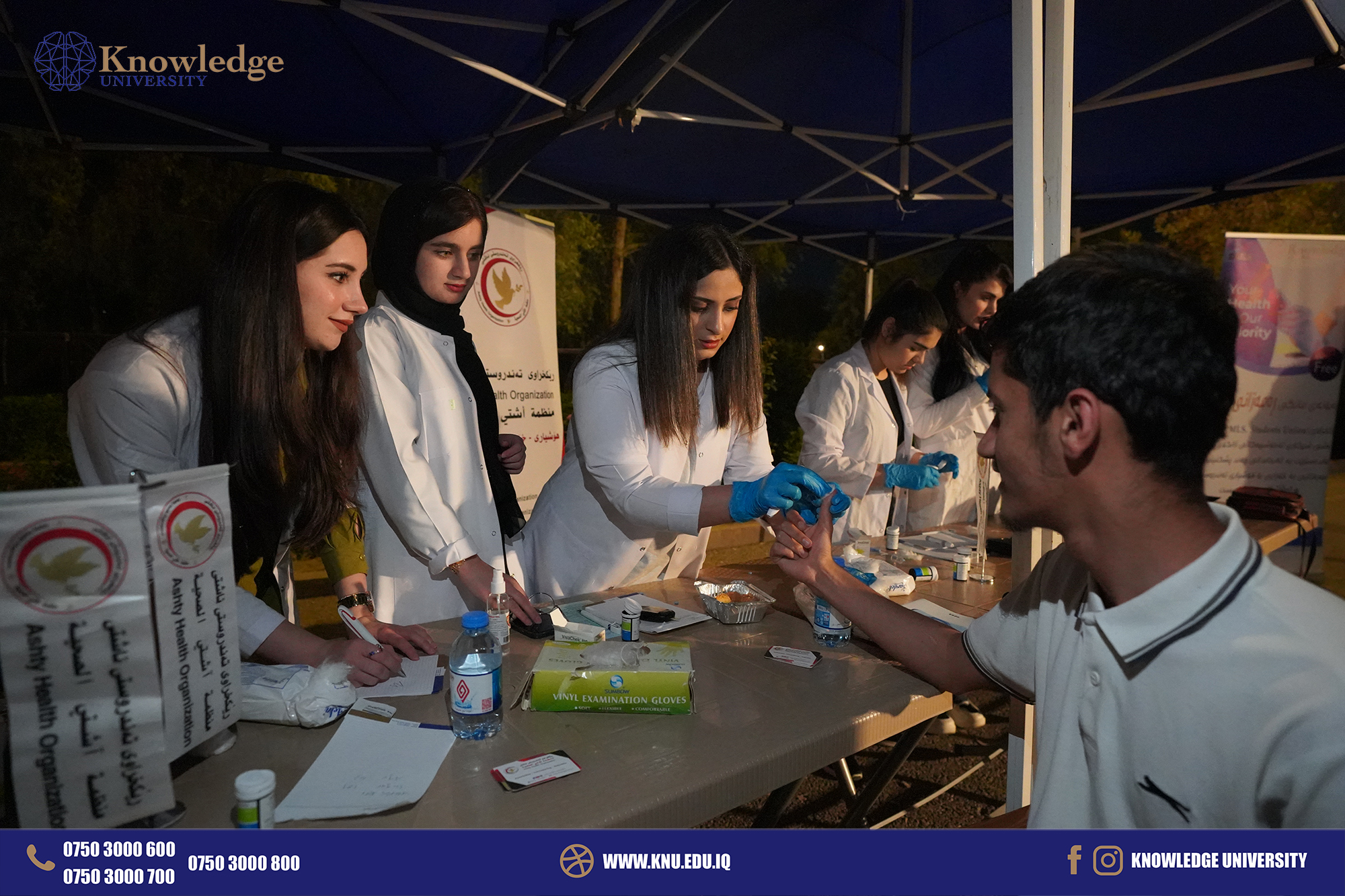 In a bid to promote public health and wellness, the Department of Medical Laboratory & Pathology of Knowledge University, under the leadership of (Dr. Rizgar Farooq - Head of Department), collaborated with the (Ashti Health Organization) to conduct a series of primary health tests for visitors of the Sami Abdulrahman Park in Erbil.