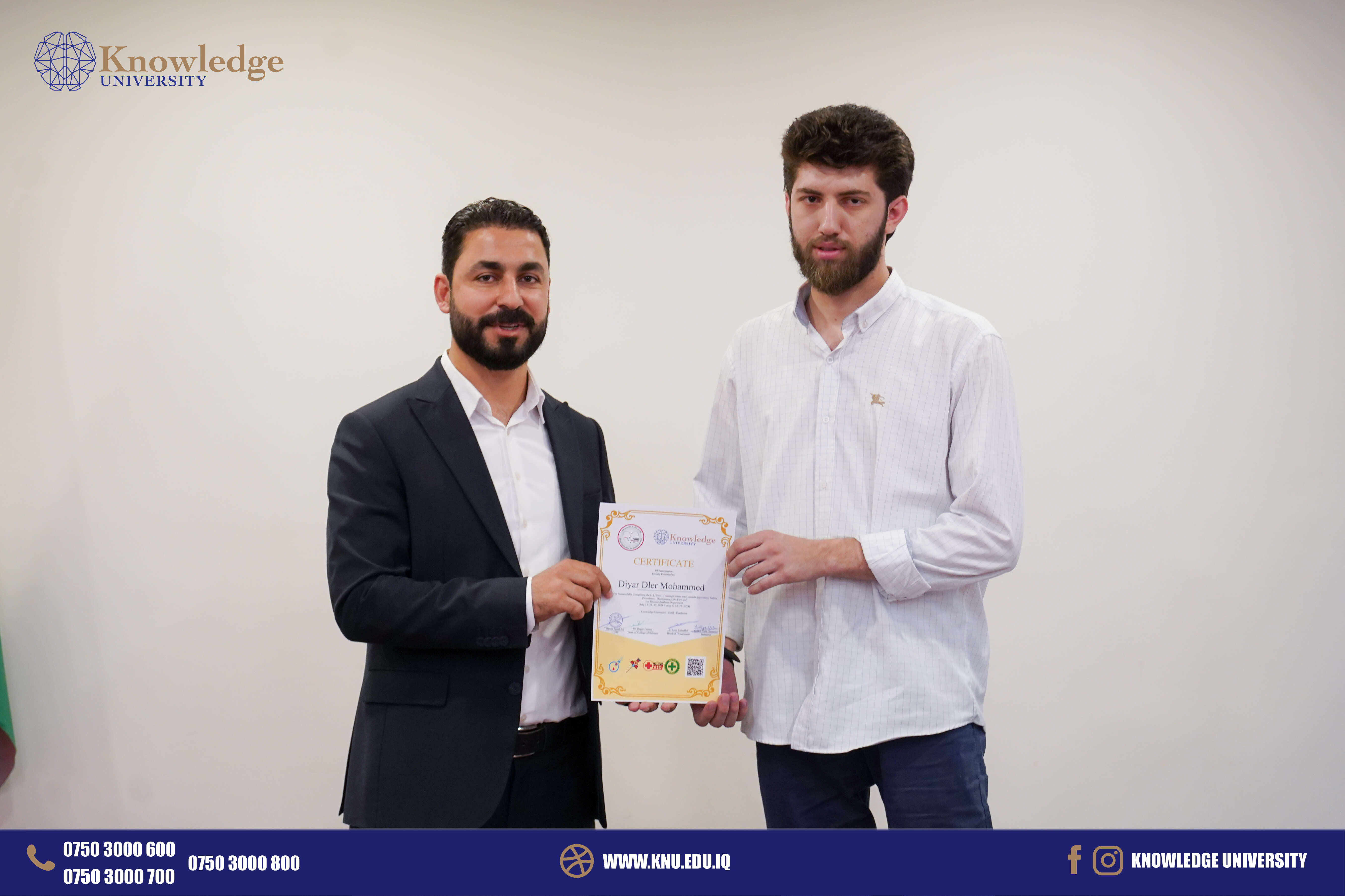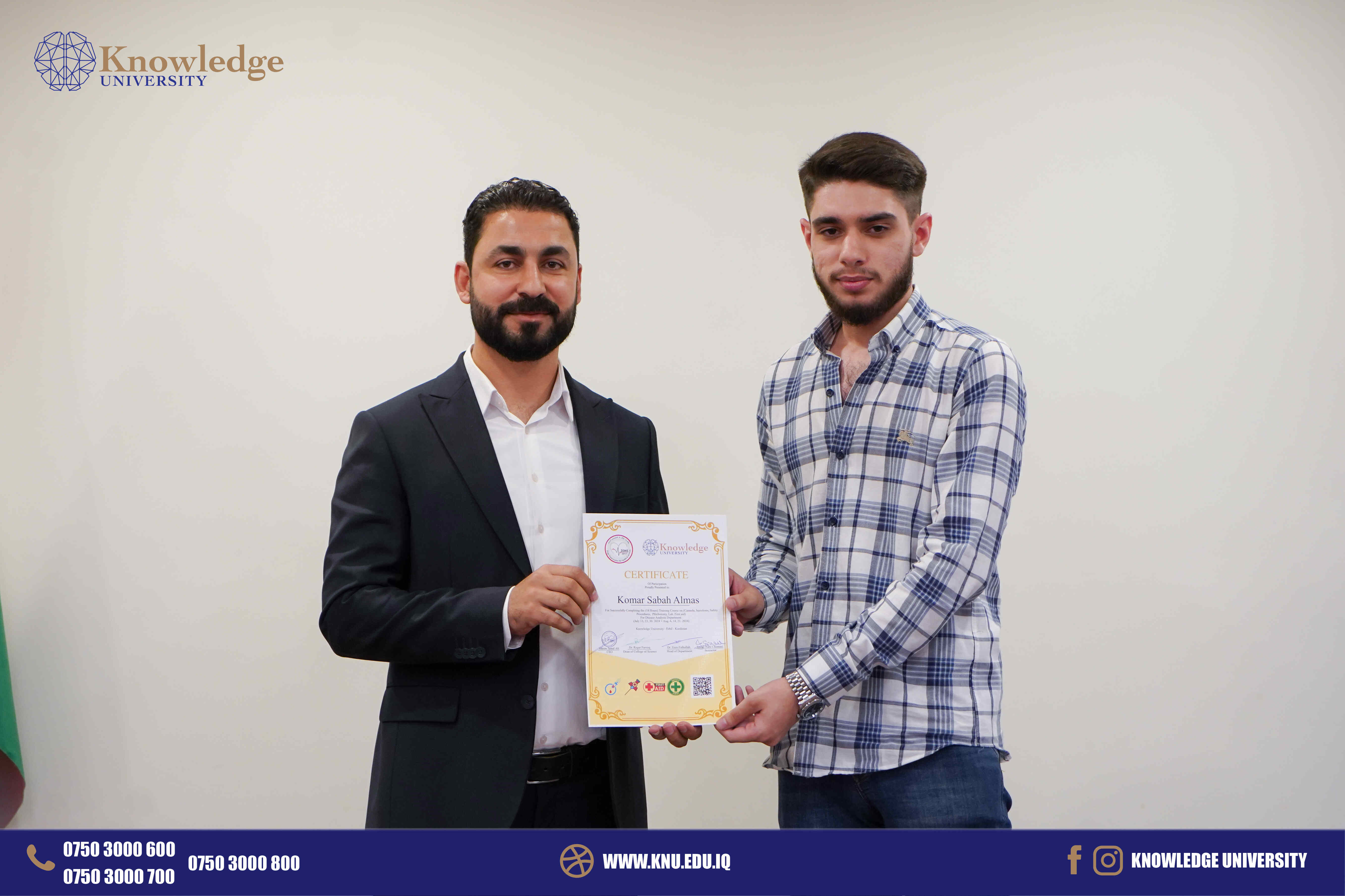 In a closing ceremony, which was graced by the presence of Dr. Rizgar Farooq, Dean of the College of Science, Mr. Ismail Nabi was honored with a Shield of Honor in recognition of his dedication and expert instruction throughout the course. Additionally, certificates of participation were awarded to all the students who completed the training, acknowledging their commitment and newly acquired competencies. This course is part of the College of Science's ongoing efforts to provide its students with practical learning opportunities, bridging the gap between theoretical knowledge and real-world application. The success of this training underscores the college's dedication to fostering the professional development of its students, preparing them for future challenges in the healthcare sector.
