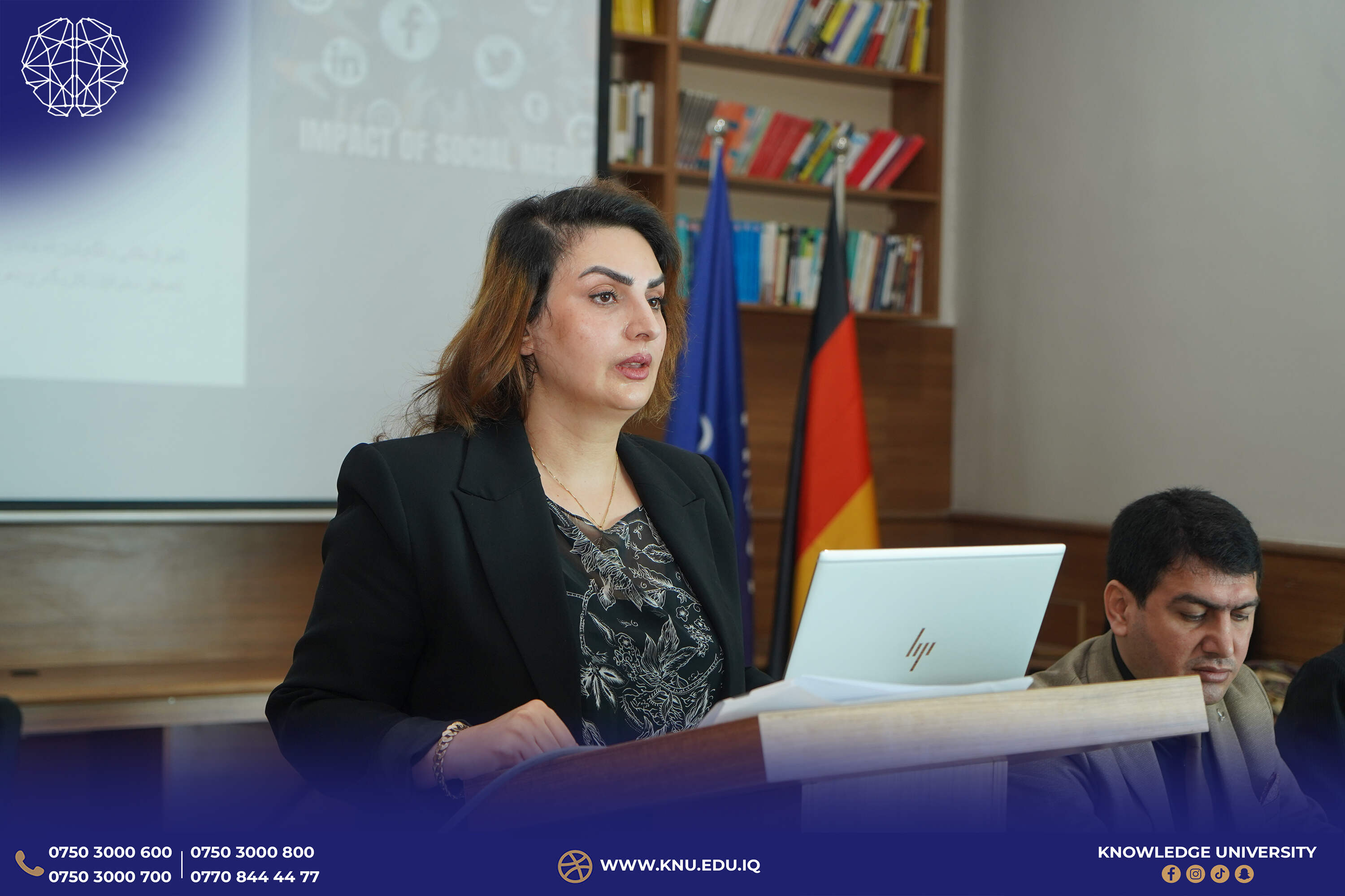 Asst. Lect. Halale Sulaiman Rahman opened the session with a discussion on "The Harms of the Negative Role of Media on the Personal Rights of Institutions." Rahman emphasized how media misrepresentation can damage institutional reputations and infringe upon personal and organizational rights, often leading to legal challenges.