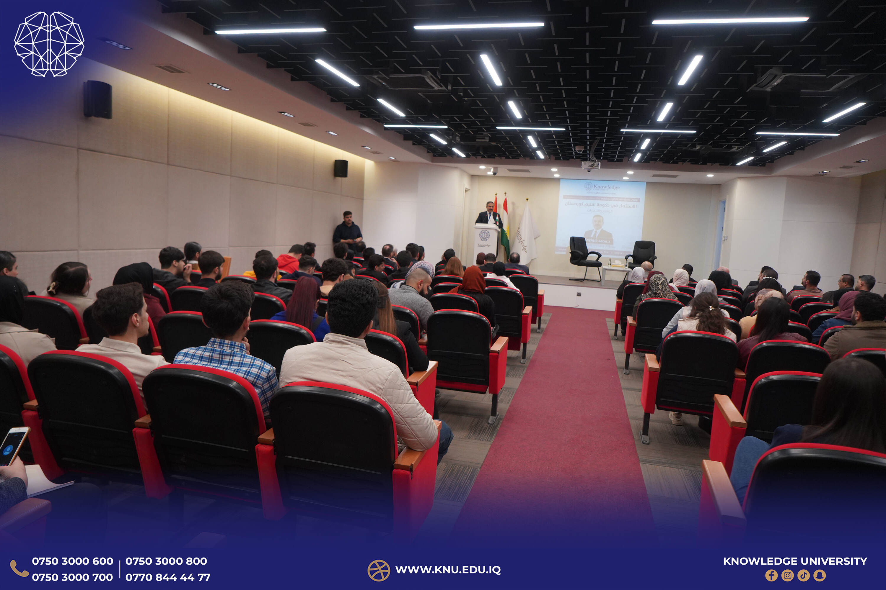 In its ongoing commitment to fostering academic excellence and community engagement, the College of Administrative and Financial Sciences at Knowledge University organized a seminar titled “Investment in the Kurdistan Regional Government – Reality and Objectives.” The seminar, held in the presence of the University President, Prof. Dr. Ahmad Dzeyi, along with the College Dean, Heads of Departments, lecturers, and students, featured Dr. Mohammed Shukri, Head of the Investment Board of the Kurdistan Regional Government (KRG), as the keynote speaker.